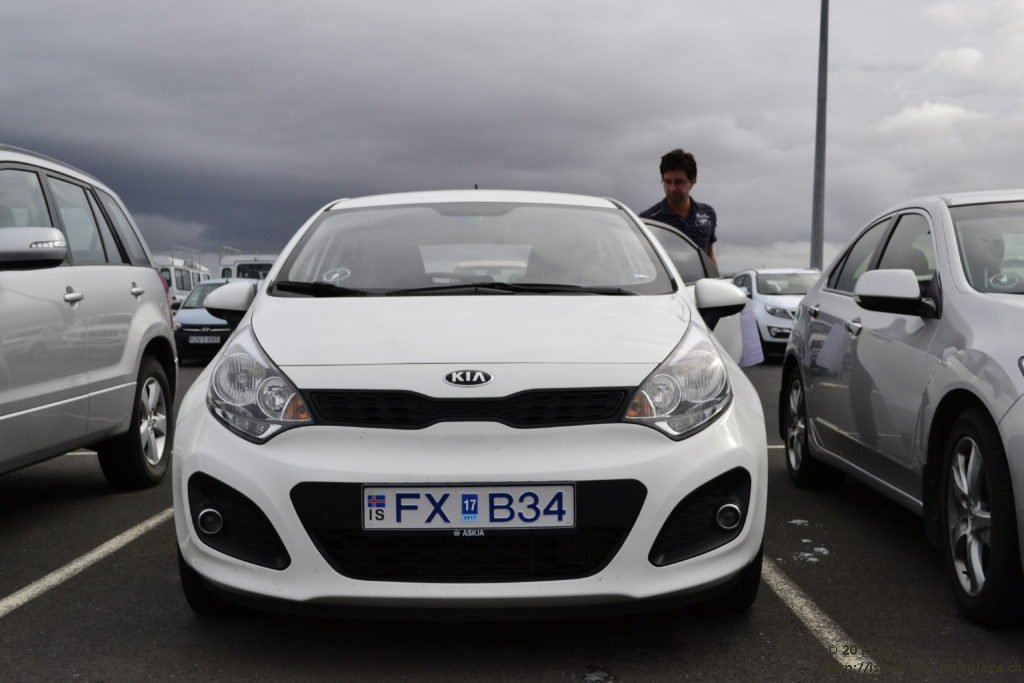 Der Flug dauert 4 Stunden und wir geniessen ihn bei Sonnenschein mit Sicht auf die verschiedenen Küsten und die verschiedenen Wolken, über welchen wir schweben. Bei 10Grad Aussentemperatur sind wir pünktlich gelandet. Nachdem wir die Koffer gefasst haben nehmen wir alles Nötige für unser Auto in Empfang und düsen dann mit dem Kia Rio los in Richtung Reykjavik.