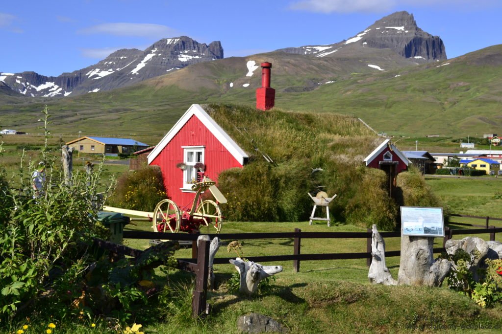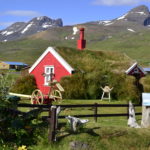 Heute möchten wir einen Teil dessen nachholen was wir gestern verpasst haben. Den Besuch in Bakkagerdi bei den Elfen und den Puffins, den Papageientauchern. Bakkagerdi ist an der äussersten nordöstlichen Spitze von Island und wir fahren über eine Stunde dorthin. Dort angekommen sehen wir sogleich dass Haus Lindarbakki, welches seit 1899 dort steht. Ein rotes Häuschen mit Grasboden überwachsen. Mit den alten Gerätschaften und den liebevoll drappierten Gartendekos wirkt es hier geradezu idyllisch. Die Besitzerin selbst, welche nur 3 Monate im Sommer hier verbringt zeigt uns die Innenräume und erzählt uns wie sie hier lebt und das Haus in Stand hält.
