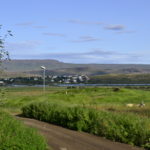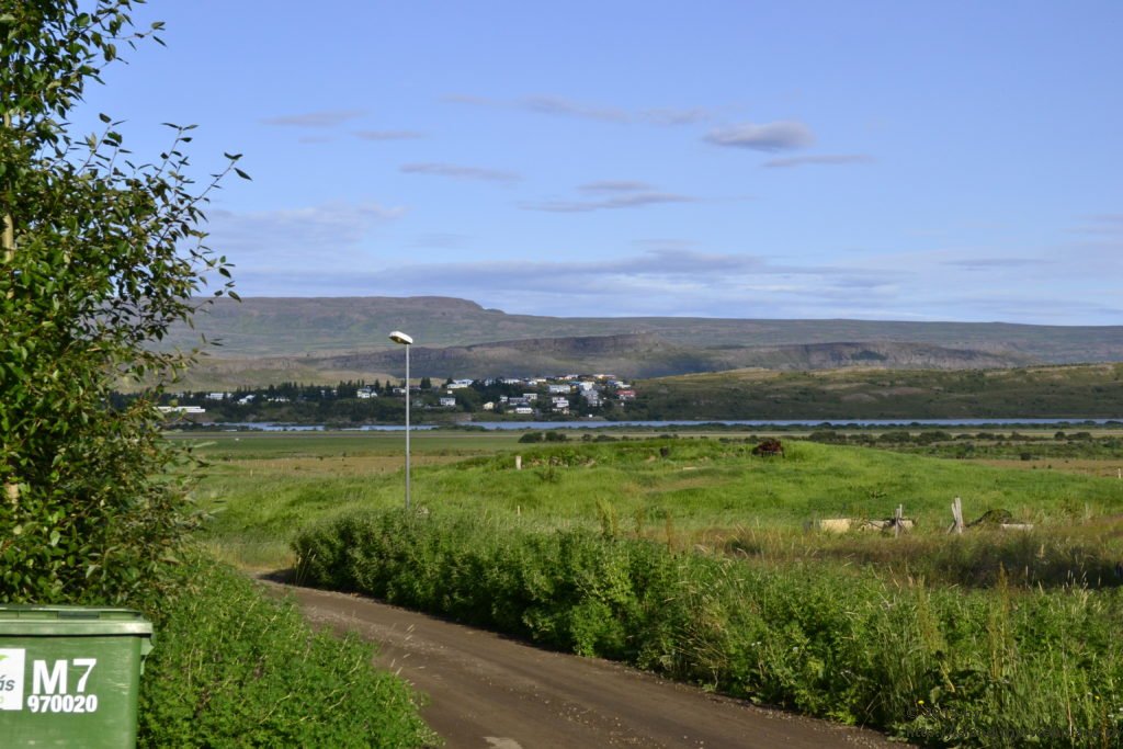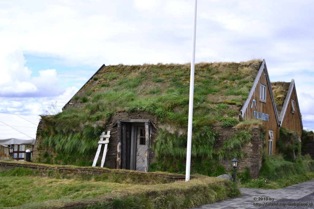 Nach einer Weile Fahrt in der schwarzen Steinwüste, sind wir um so erstaunter hier auf menschliches Leben, sprich auf ein richtiges Dorf zu treffen. Herzige Torfhäusschen schmücken den Dorfeingang und ziehen die Besucher magisch an. Wir werden freudig vom Dorfhund begrüsst und auch wedelnd wieder verabschiedet als wir das Dorf wieder verlassen.