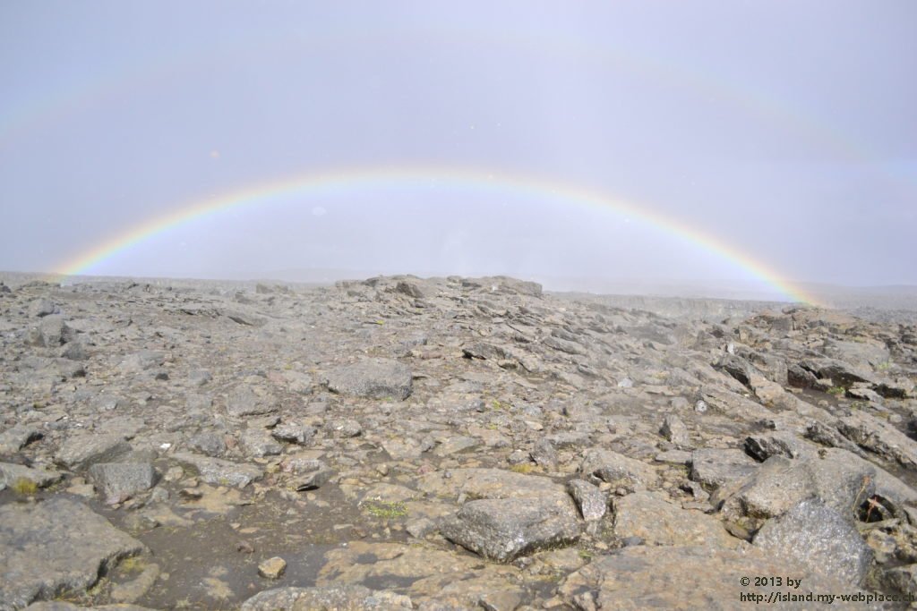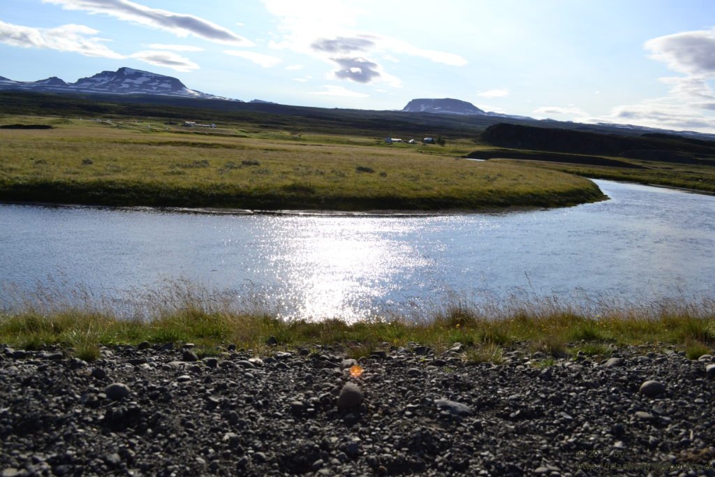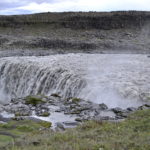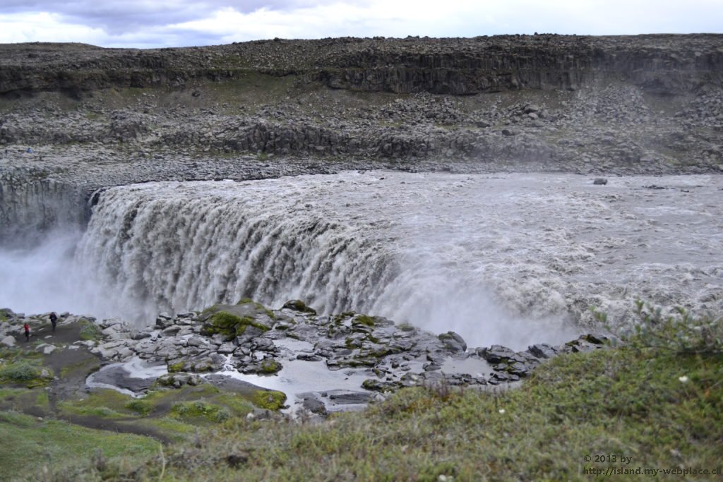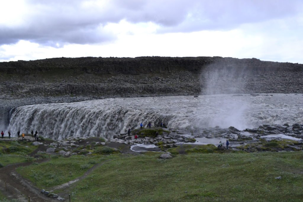 Weiter auf der Ringstrasse geht es dann bis zur grossen Brücke, die über die Jökulsá á Fjöllum führt. Der Fluss entspringt dem grössten Gletscher Islands, dem Vatnajökull und ist zugleich der breiteste und längte Fluss in Island. Wir loggen den dort liegenden Cache und biegen nach der Brücke schon bald in die Secondary Route zum Detifoss ein. Vom Parkplatz aus eine halbe Stunde hinter viel Basaltgestein gelegen bietet sich uns ein imposantes Schauspiel. Der Detifoss ist ein 100m breiter Wasserfall, der 45m in die Tiefe stürzt. Unvorstellbar welche Wasserkraft hier zu Boden donnert. Daran, dass das ganze Tal nach dem Wasserfall noch von der Gischt gefüllt ist und am lauten Getöse kann man sich ungefähr erahnen was hier für ein Schauspiel vor sich geht.