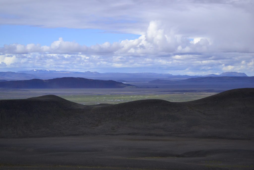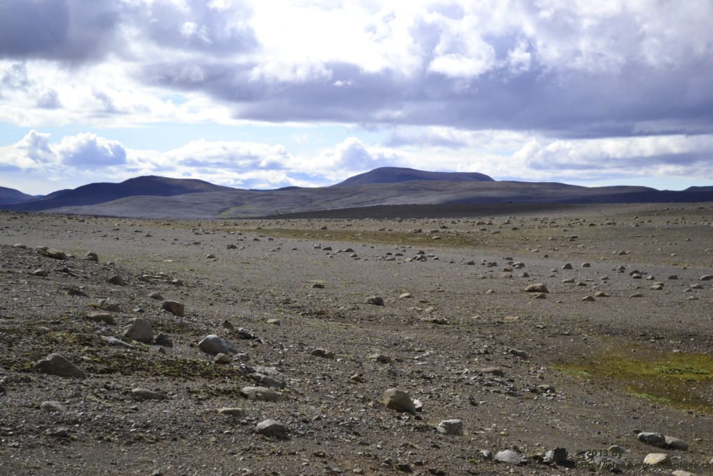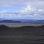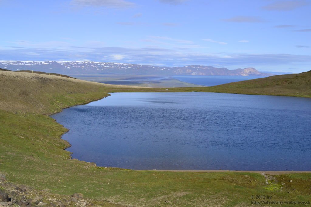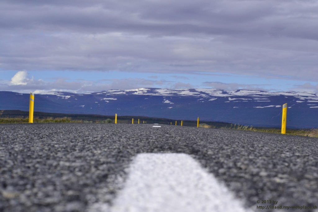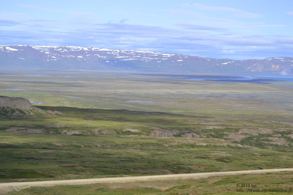 So fahren wir nach ein paar Mövenbildern wieder zurück Richtung Egilstadir und von dort weiter gegen Westen zu. Um nicht nur der Ringstrasse entlang zu fahren machen wir einen kleinen Abstecher auf die ehemalige Ringstrasse, die uns durch vulkanisches Gebirge und eine fast mondähnliche Gegend führt. Hier trifft man ausser ein paar verirrten Schafen wohl niemanden an.