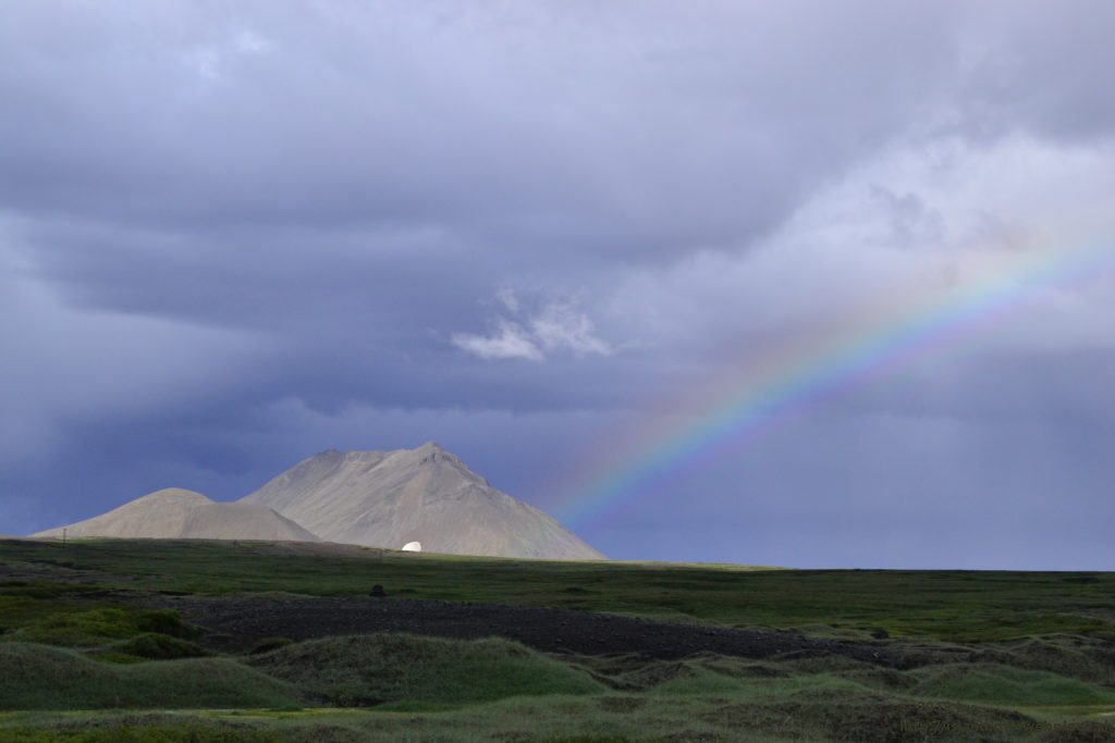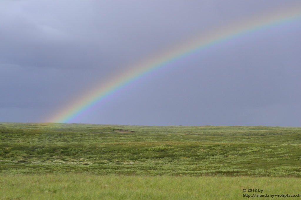 Als wir schon wieder auf dem Weg zum Auto sind schlägt das Wetter um und die schwarze Wolke über uns entleert ihren ganzen Inhalt. Wir werden nass bis auf die Unterwäsche, aber wer scheut schon ein Unwetter, wenn man mit einem prächtigen Regenbogen dazu belohnt wird. Pudelnass wechseln wir im Auto die Kleider und fahren dann in unsere neue Unterkunft wo wir 3 Nächte verbringen werden.